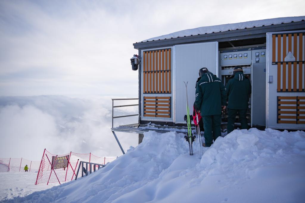 皆凡和哈依沙尔带着雪具乘缆车抵达海拔2800米的云表峰顶,这里是高档雪说念的起头,亦然电力保险的重中之重。