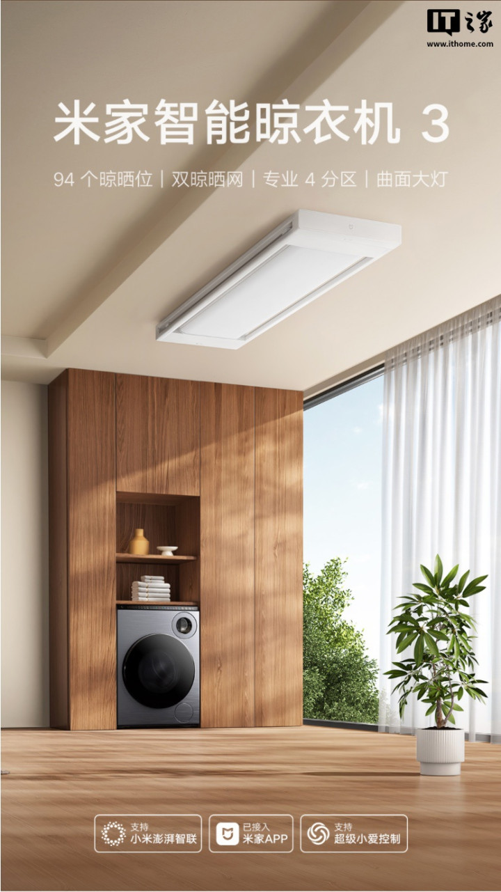 IT之家4月20日音信,小米米家智能晾衣机3本日起在有品开启众筹(点此探听),众筹得手价1299元。