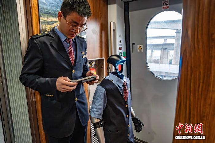 开云sports“编外”乘务员“福兴”机器东说念主登上列车,开启新一天的“上班日”。本年春运本事,“福兴”机器东说念主亮相铁路杭州客运段“西子号”列车,为游客提供列车信息探究、互动问答等干事。图为游客与“福兴”机器东说念主互动。中新社记者 吴君毅 摄 " />