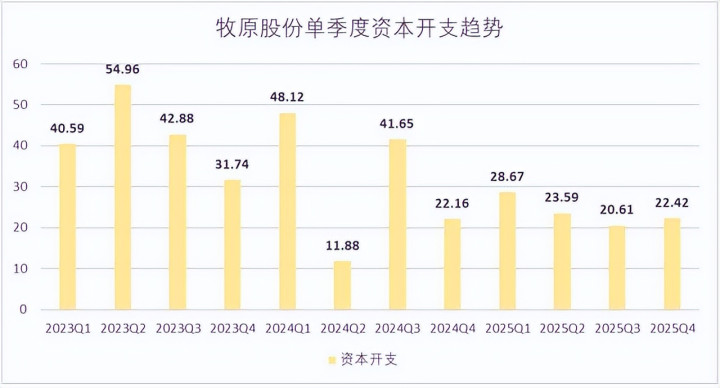 老本开支层面,正如前文所言,功绩会中措置层主动下调了2026大哥本开支的预期,其实从2025年开年以来,牧原就依然疗养了老本开支节律,全年累计老本开支95.3亿,较2024年下滑了28.5%。