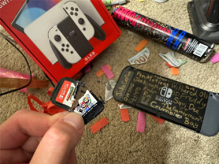 一如日常,博士在社群里闲荡,顷刻间发现了一个罕见火的贴文。一位来自日本的玩家“くろなぎ(社群ID为kuronagi2525)”示意我方的任天国Switch主机被父母发现并出手砸毁,心碎的他后续只可在网上发文向爱机谈别,原文翻译过来便是:“Switch终于被父母发现了,谢谢你一直以来的陪伴,以后再也玩不到游戏了呢”。