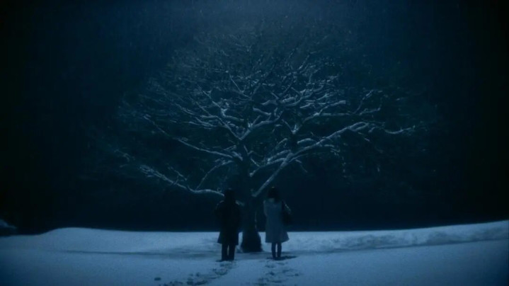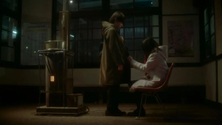 而真东谈主版的终末一个画面,透顶改写了这份留白:平交谈的对侧,明里似乎就站在那边。她一稔朴素的衣服,隔着铁轨,与阿谁曾经在雪夜拥吻她的男孩对视。莫得台词,莫得看成,就在两东谈主眼光交织的顿然,画面骤然切黑。