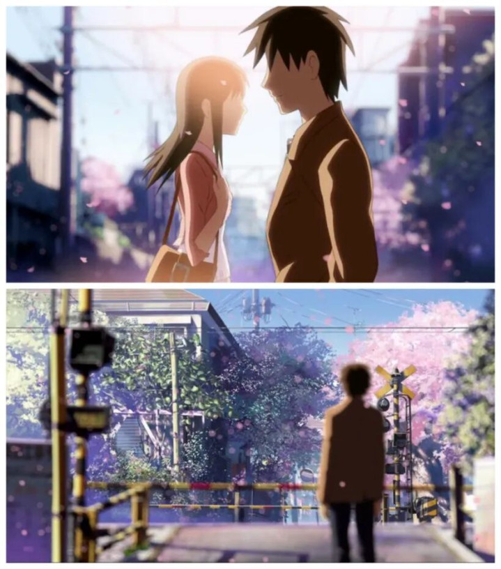 新海诚作念了一个极为紧张的叙事瞎想:成年后的明里,根底莫得认真出场。咱们唯独能看到的,是结局处列车驶过之后,她早已离开的背影——莫得台词,莫得回头,致使莫得一个明晰的面部镜头,仿佛仅仅贵树回忆里一个迟滞的璀璨。