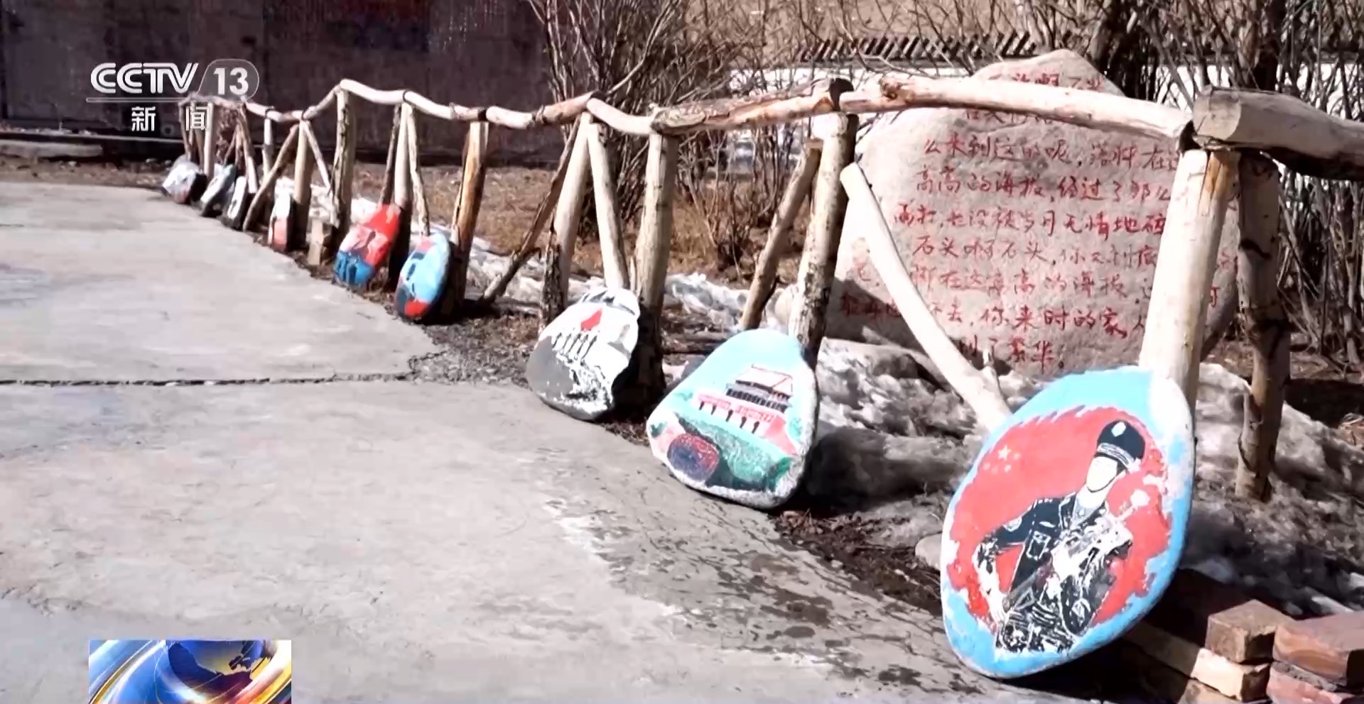 在这些石头上,纯真地画着界碑、雪山、蓝天、巡查场景等,五颜六色的石头画,展现着民警们戍边的铮铮誓词。而袁啸照旧画好的那块石头,传递着对爷爷的想念和担心。