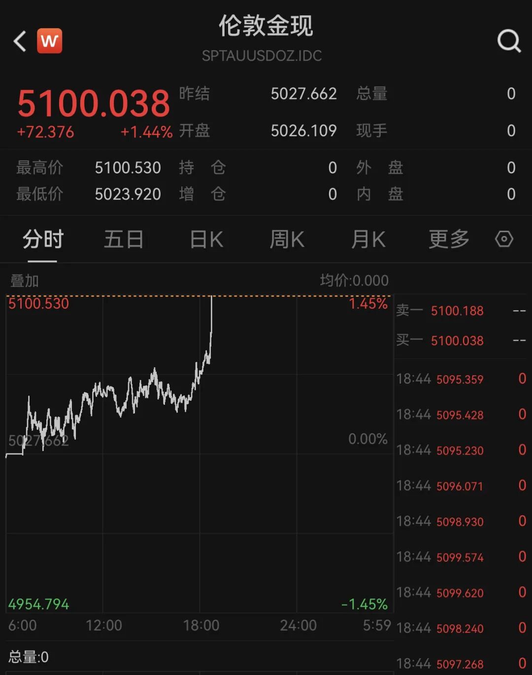 盘中再次破裂5100好意思元大关,涨超1.4%。